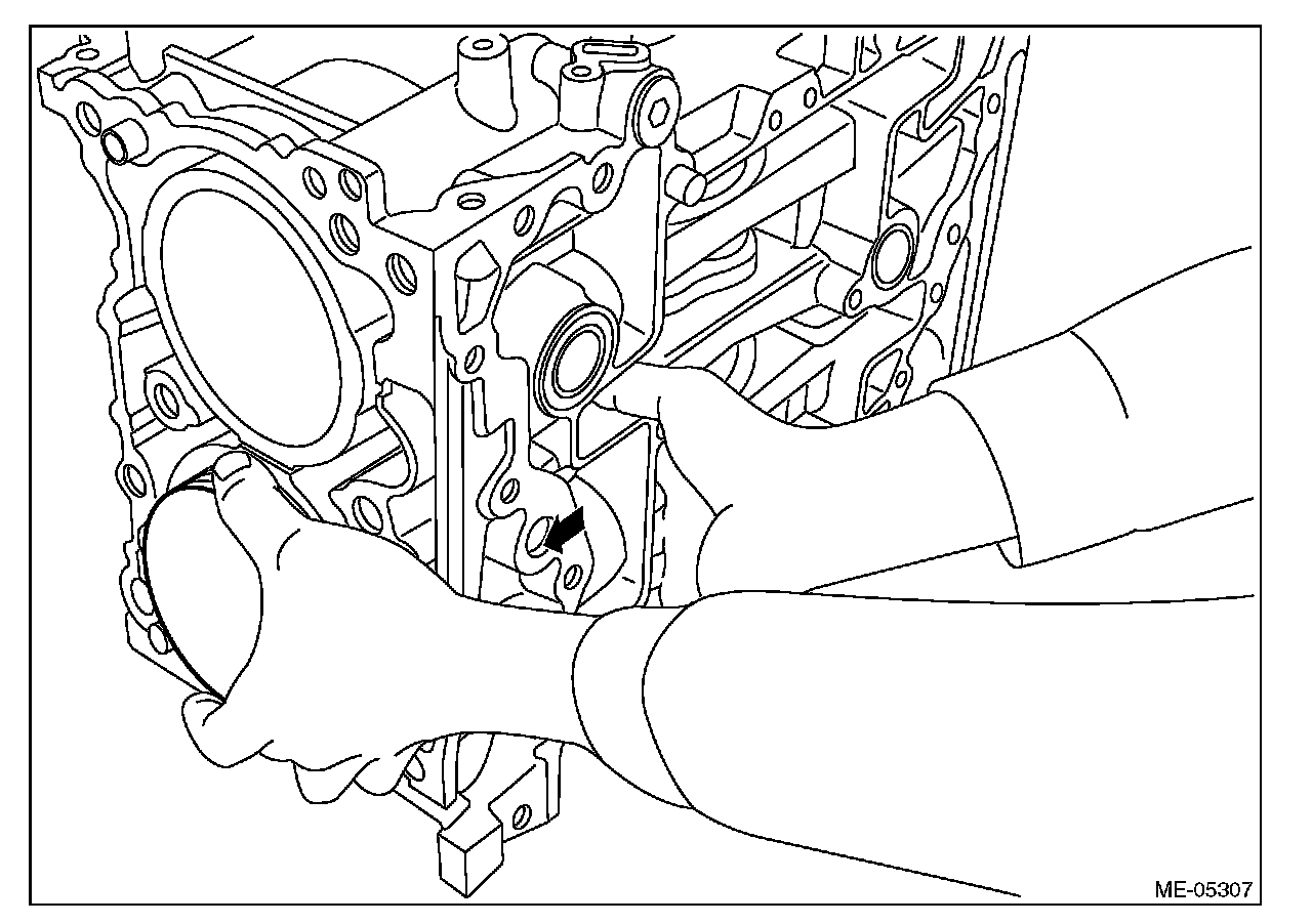 7) Set the part so that the oil pan side of cylinder block is on the upper side.