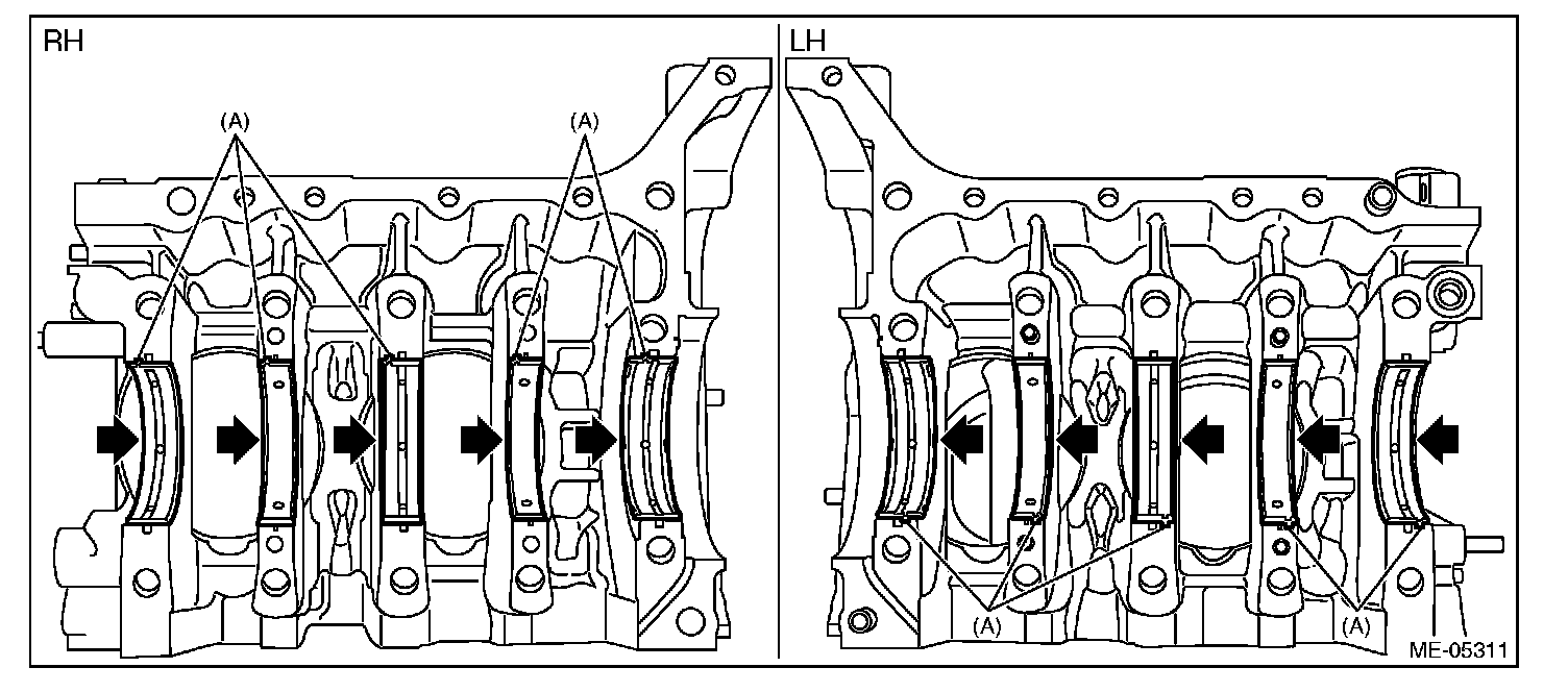 ^ Before applying liquid gasket, degrease the old liquid gasket seal surface of the cylinder block RH and cylinder block LH.