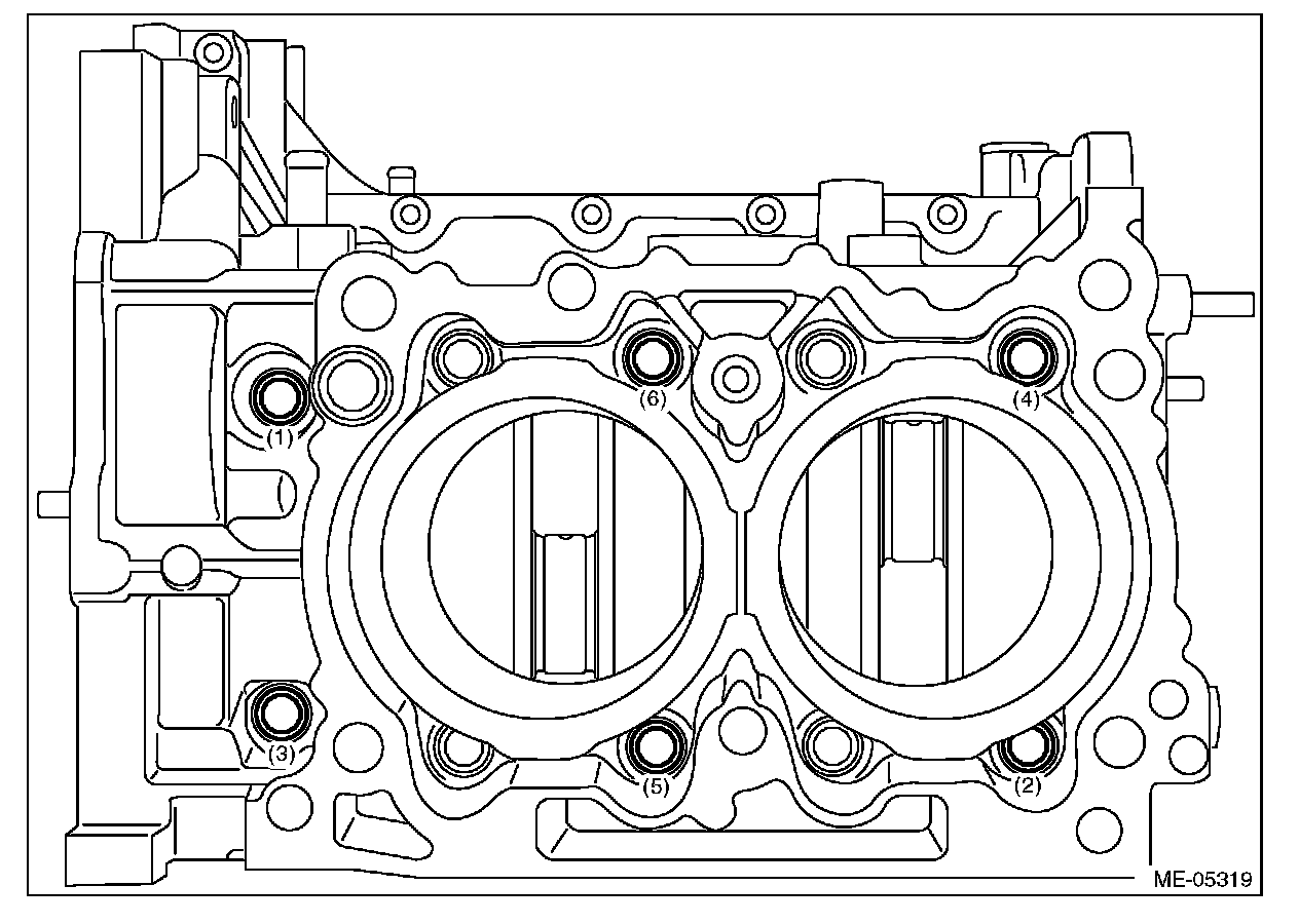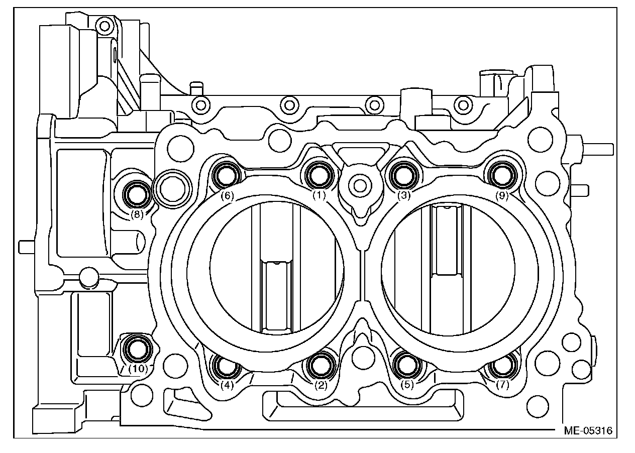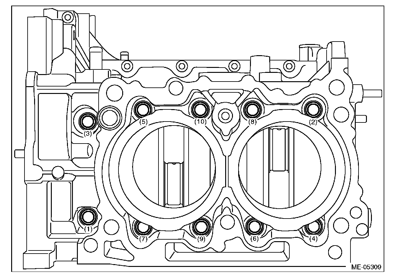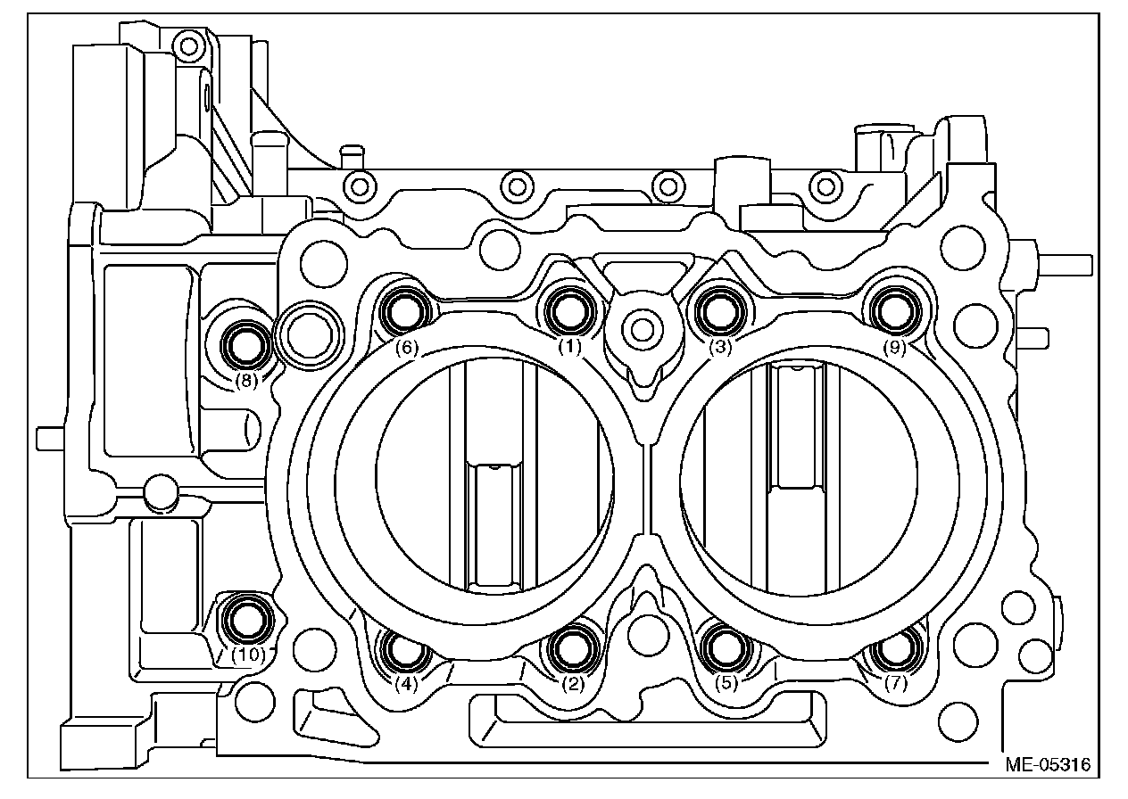 (2) Loosen the cylinder block mounting bolts in numerical order as shown in the figure, and separate the cylinder block RH and LH.