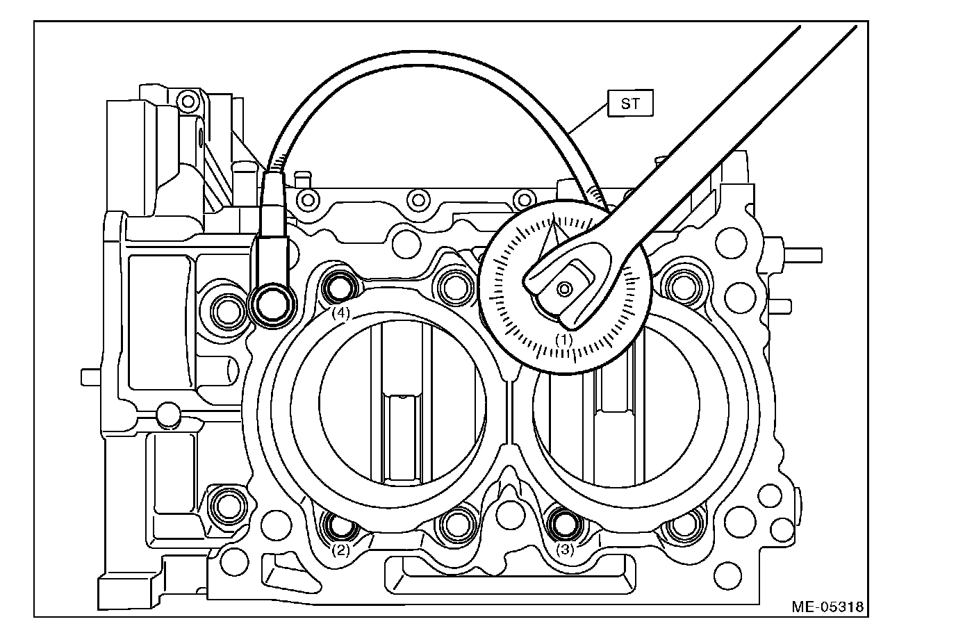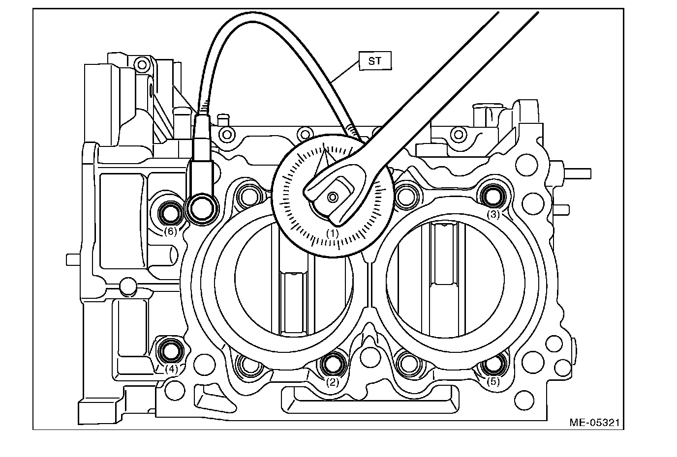 This procedure is required to tighten the cylinder block mounting bolts with specified angle using ST.