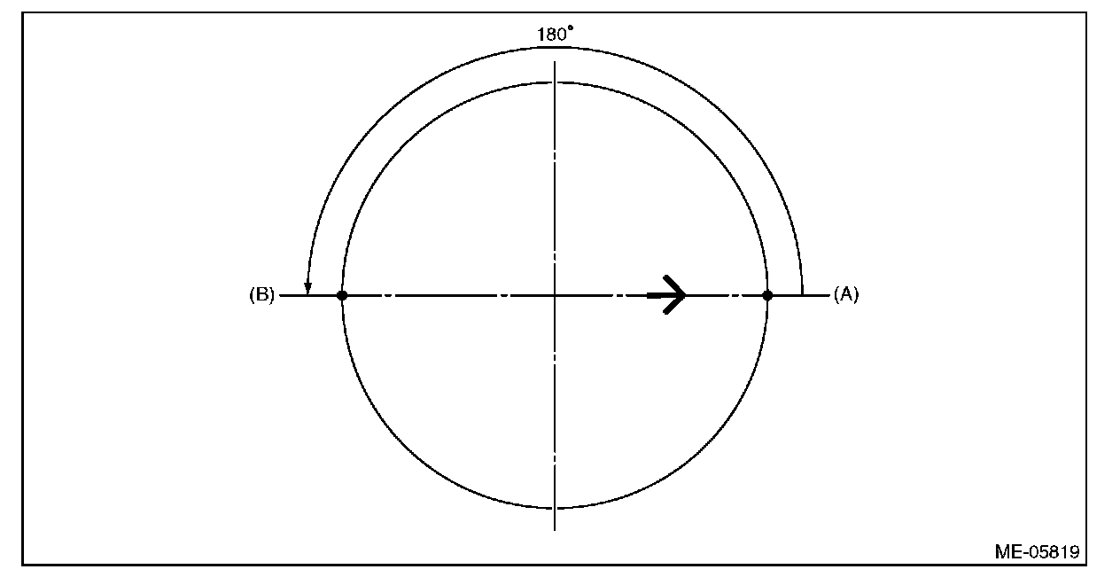 (2) Position the ring gap of second ring at (B) in the figure on the 180° opposite direction of (A).