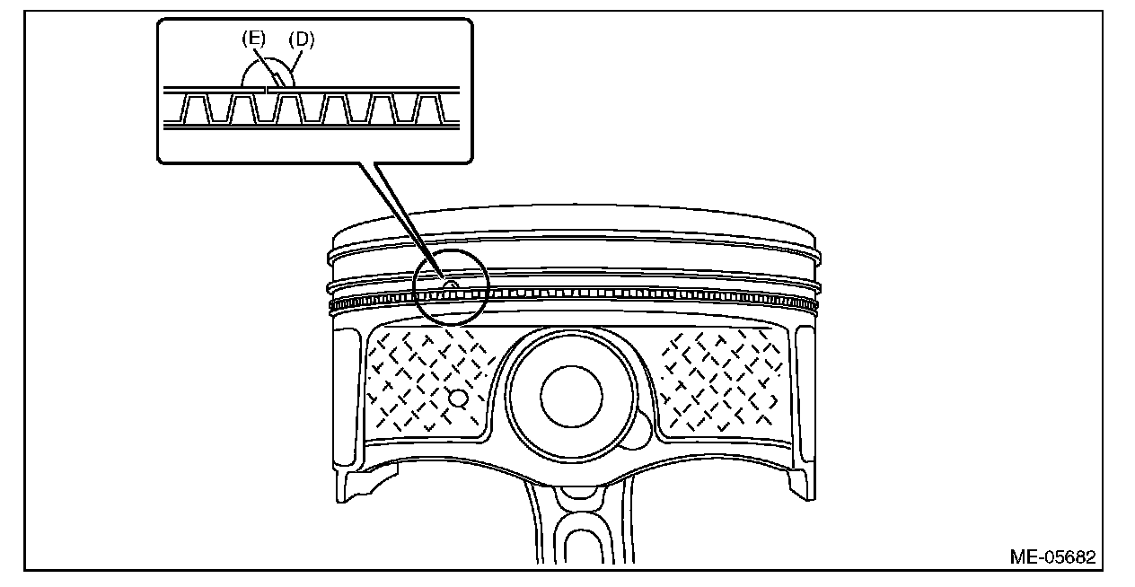 (5) Position the ring gap of expander at (F) in the figure on the 180° opposite direction of (C).