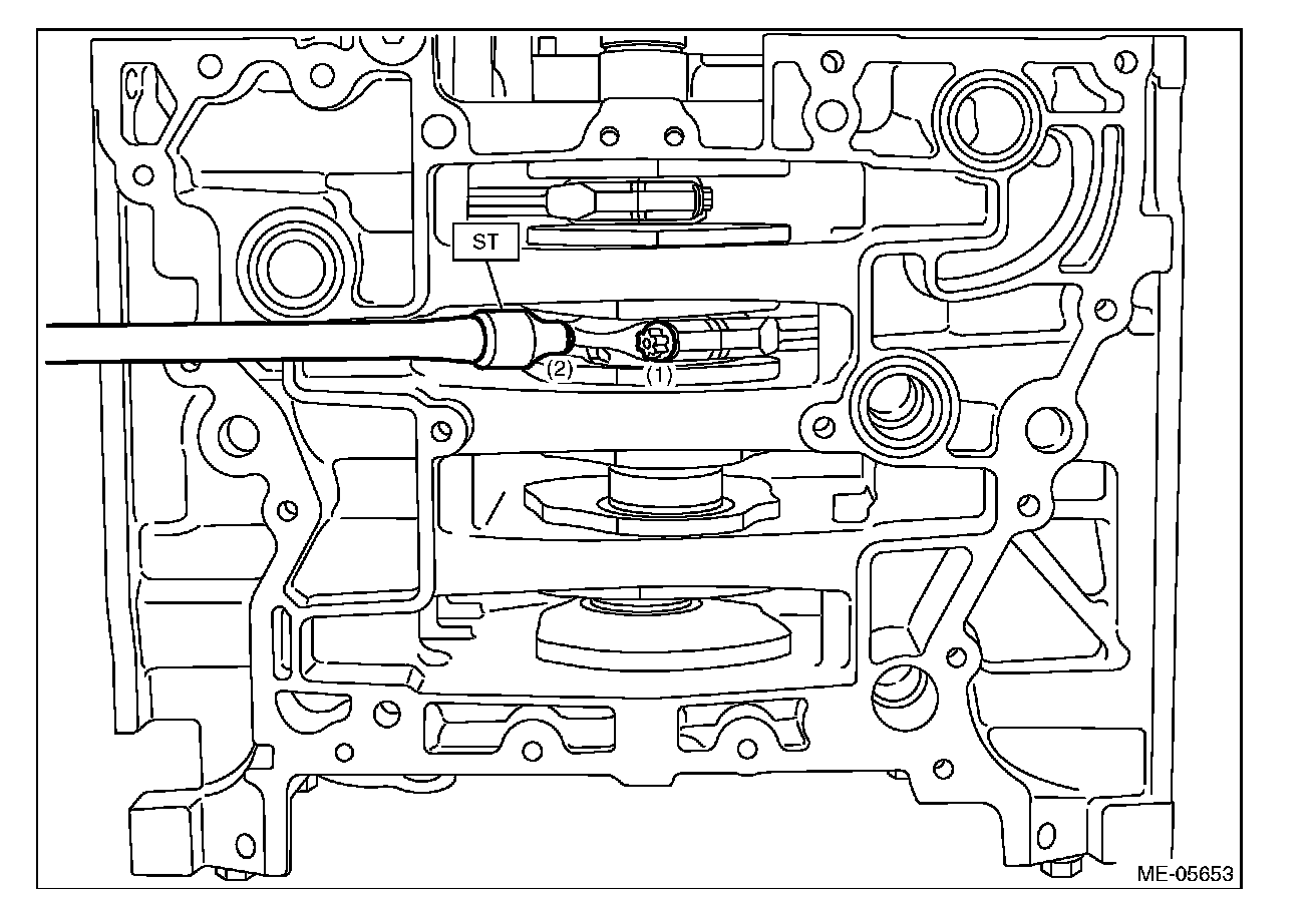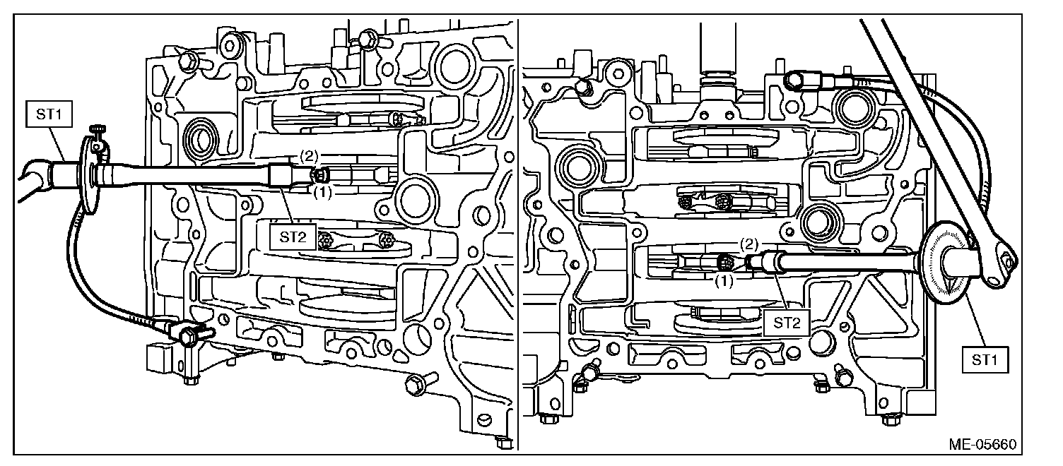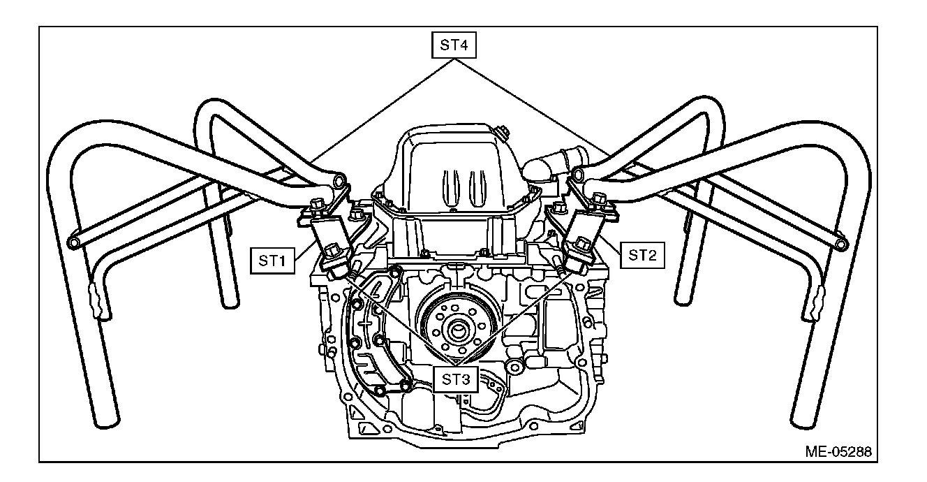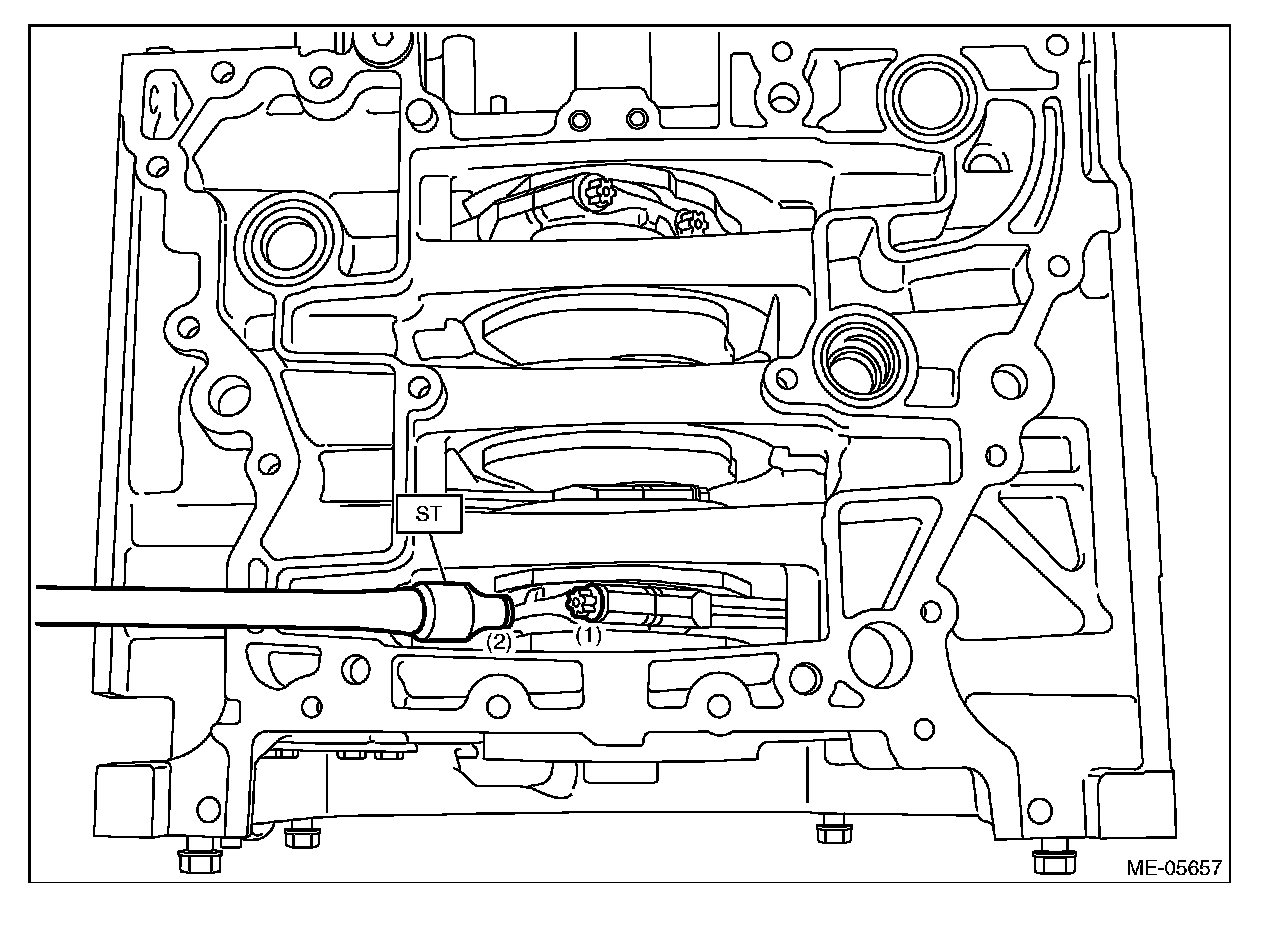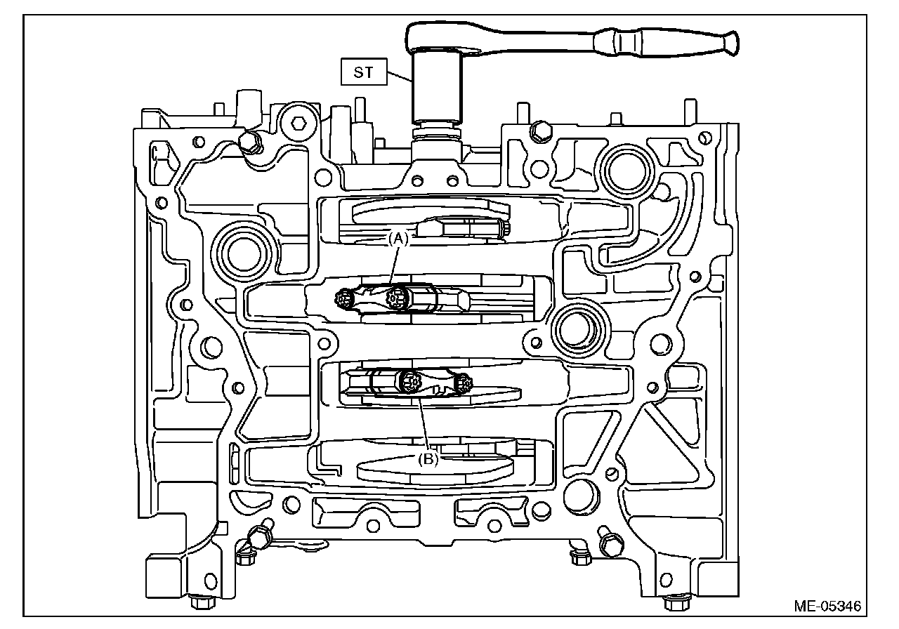 16) Install the ST1, ST2, ST3 and ST4 to the cylinder block and oil pan upper.