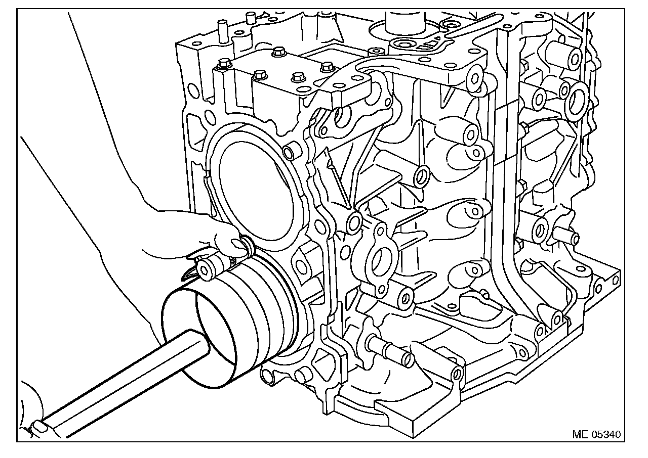 (3) Compress the piston ring using piston ring compressor, and insert the #1 connecting rod with #1 piston into cylinder block.