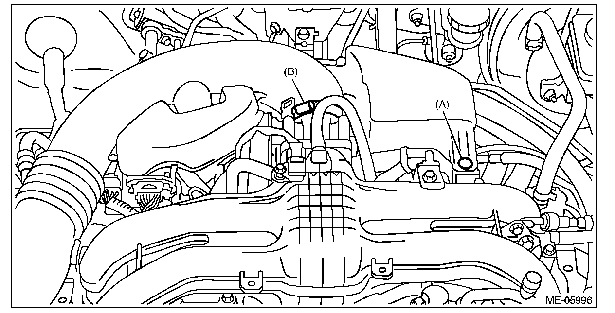 (2) Remove the clip (A) from the air intake boot, and loosen the clamp (B) securing the air intake boot to the throttle body.