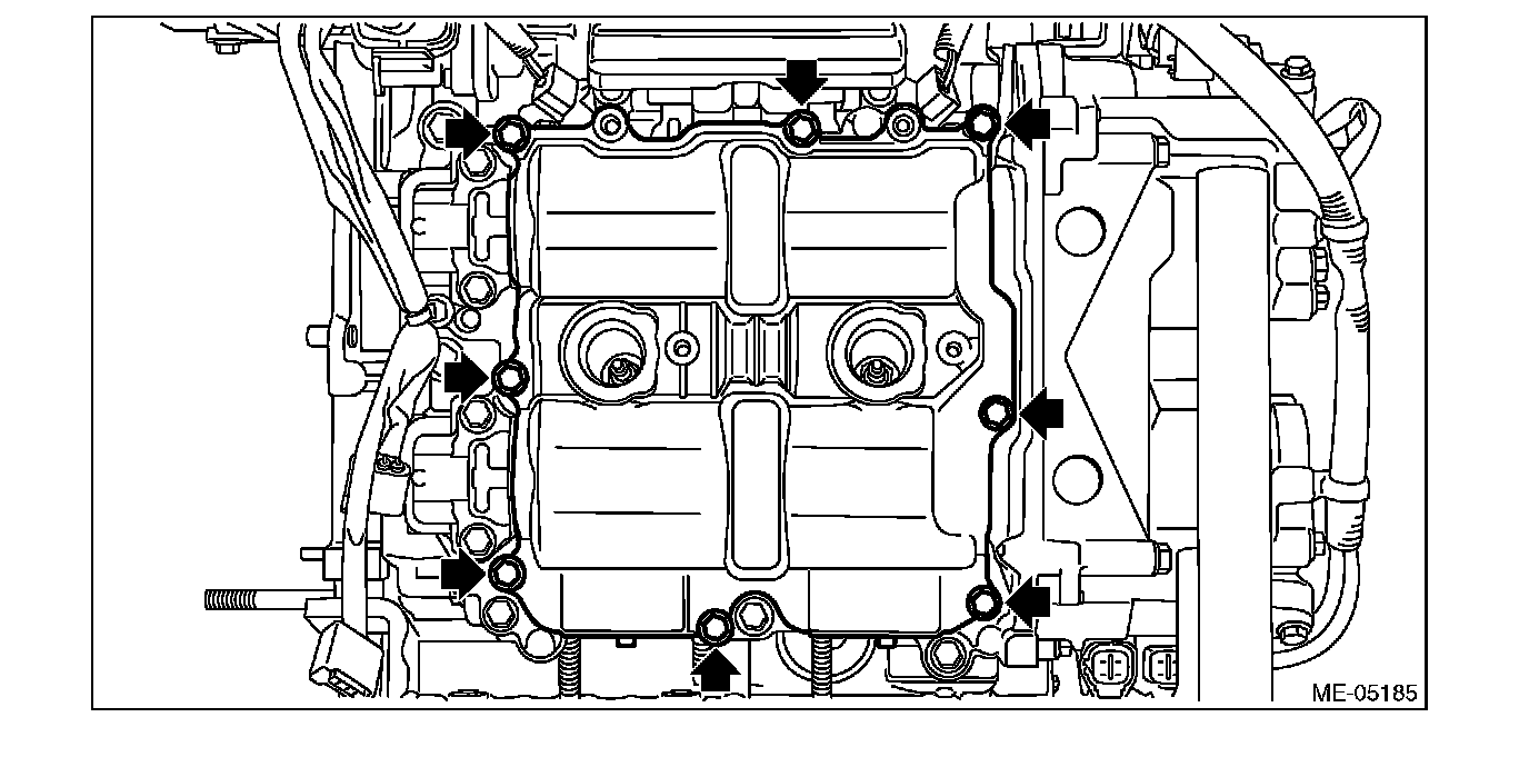 5) Set the rocker cover LH, and tighten the bolts in numerical order as shown in the figure.