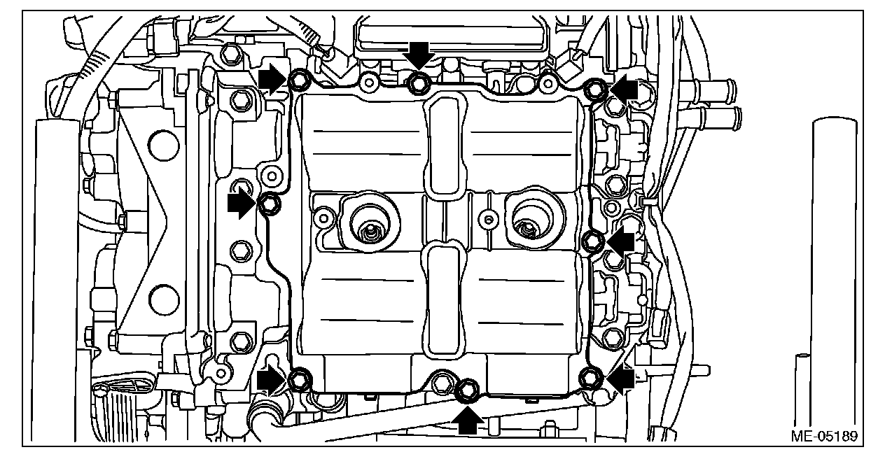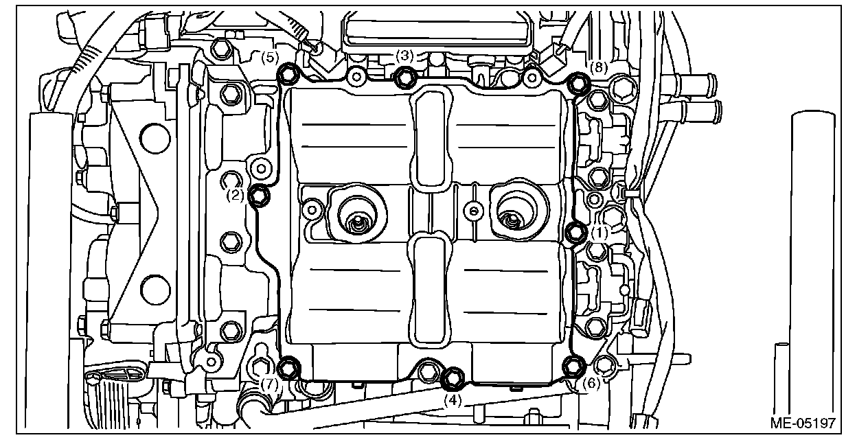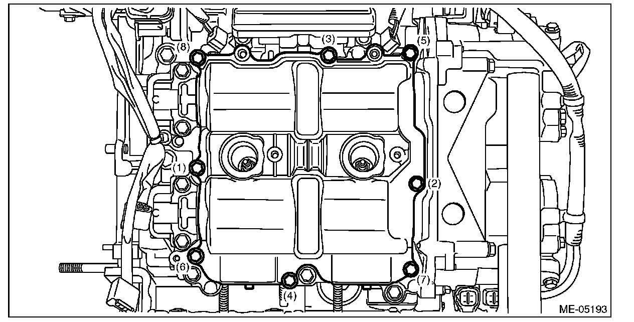 4) Set the rocker cover RH, and tighten the bolts in numerical order as shown in the figure.