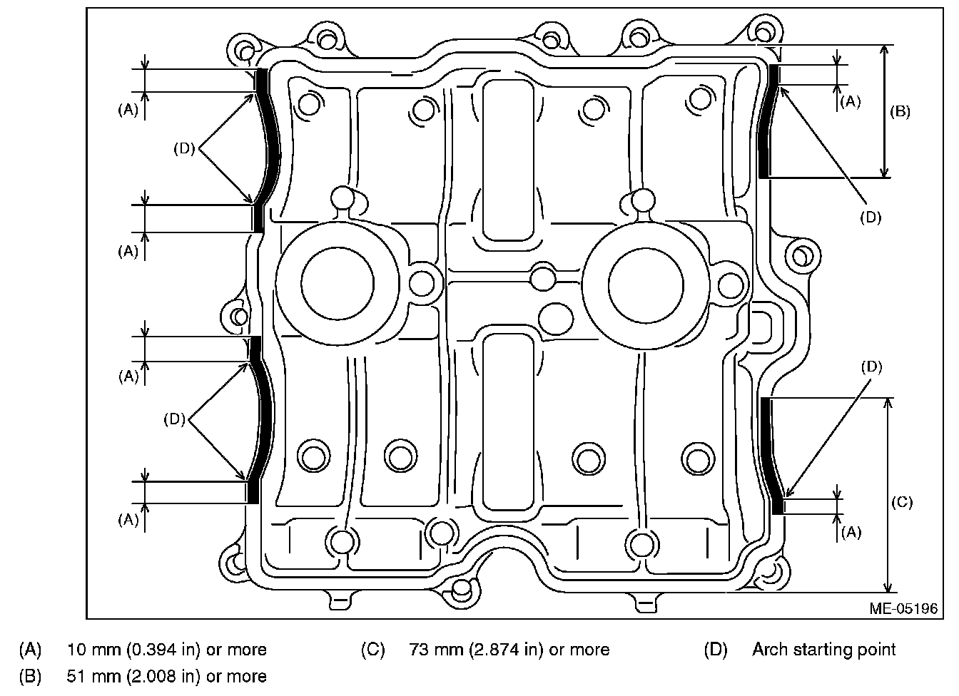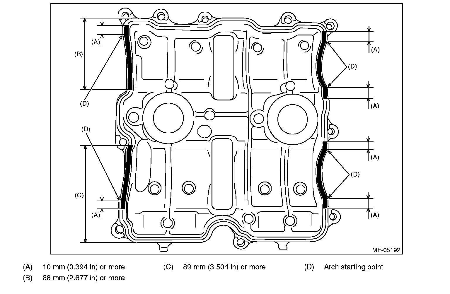 3) Apply liquid gasket to the mating surface of rocker cover RH as shown in the figure.