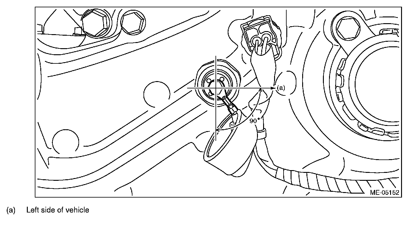 The oil pressure switch harness must be positioned toward the left lower side of the vehicle within the range of 90°.