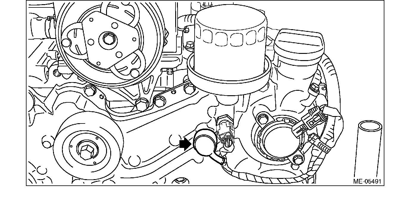 4) Remove the engine oil temperature sensor.