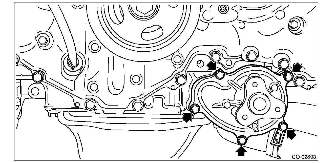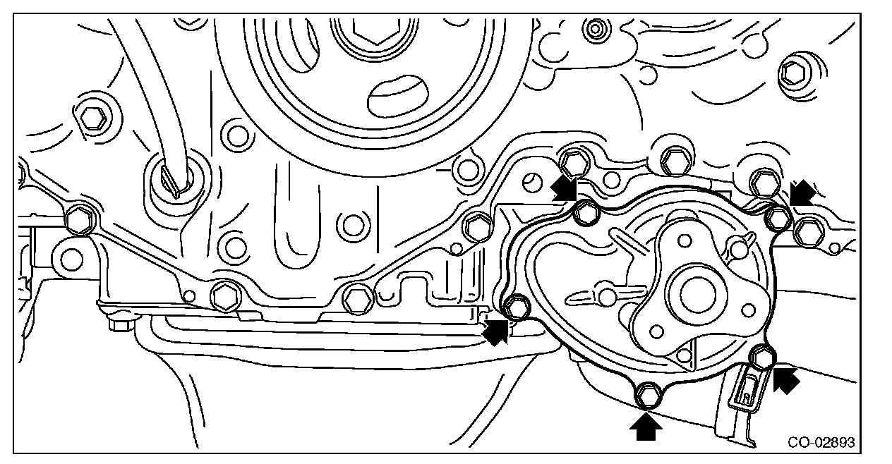 4) Remove the water pump from the oil pan upper.