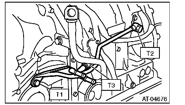 6) Install the ATF cooler inlet and outlet pipes.