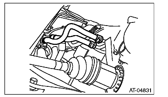 ^ Insert the ATF radiator hose into the specified position.