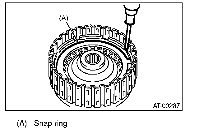 10) Install the snap ring to high clutch drum.