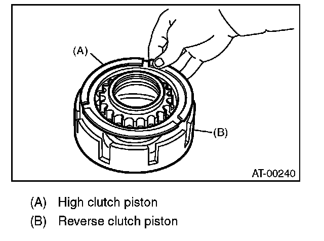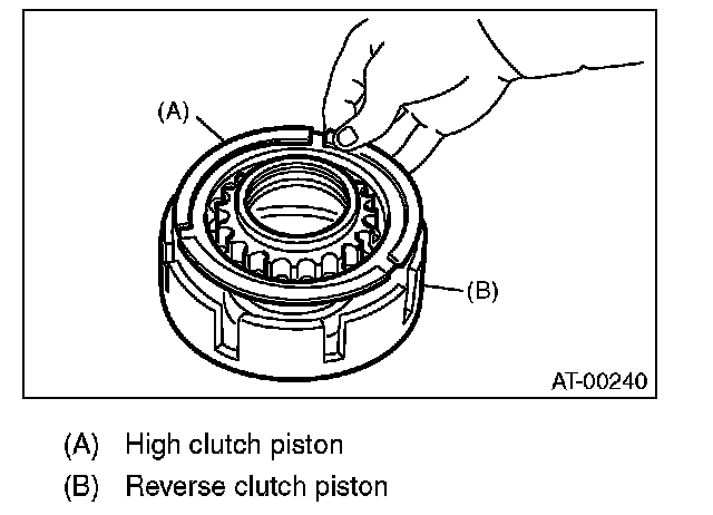 2) Install the high clutch piston to the reverse clutch piston.