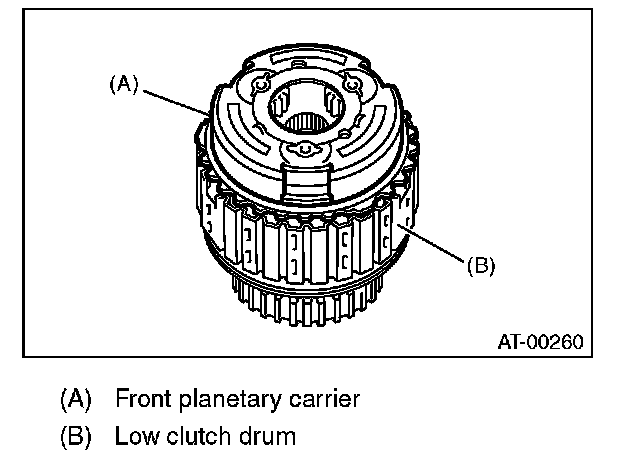 17) Install the front planetary carrier to the low clutch drum.