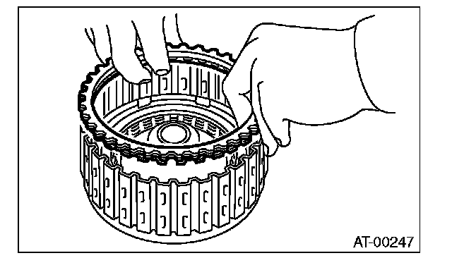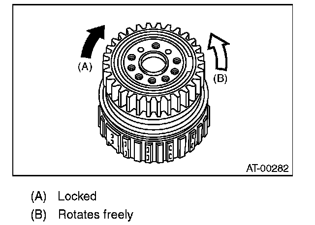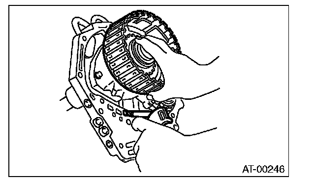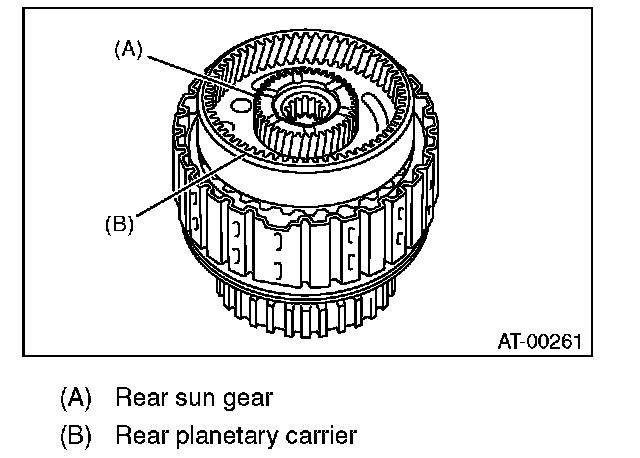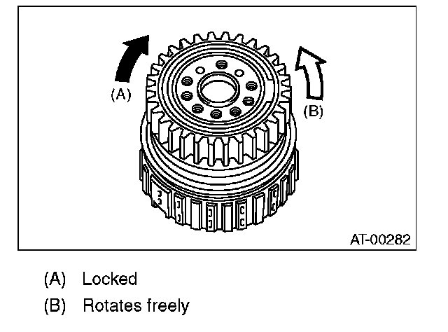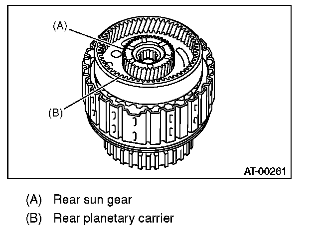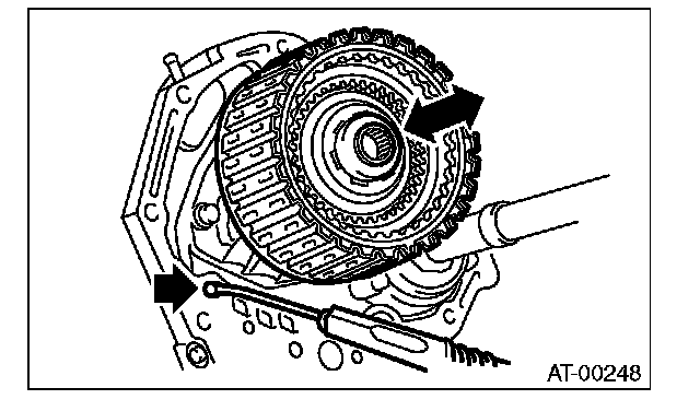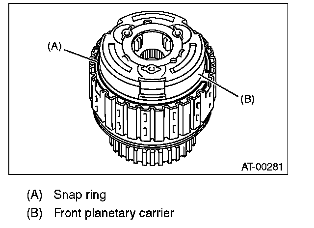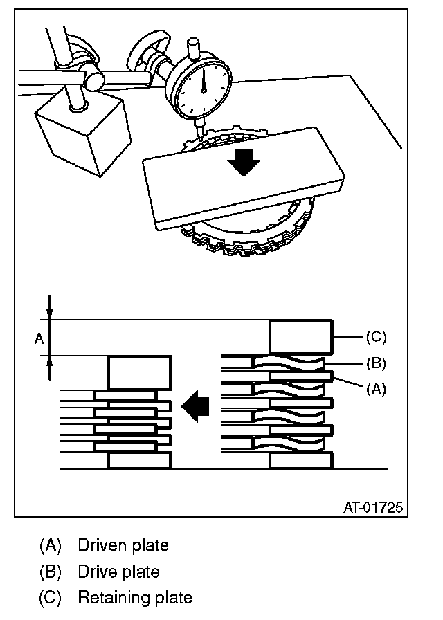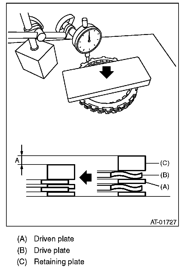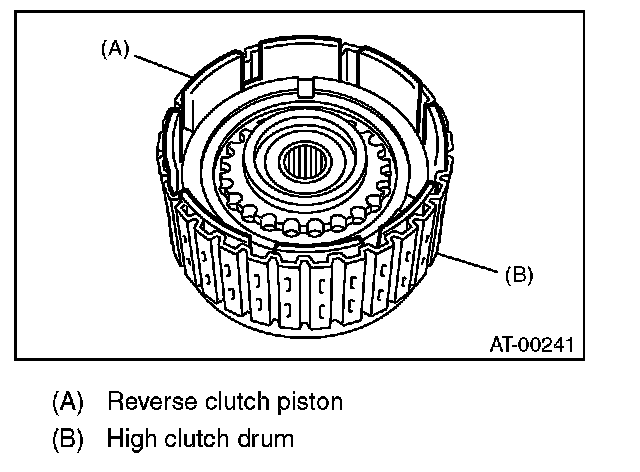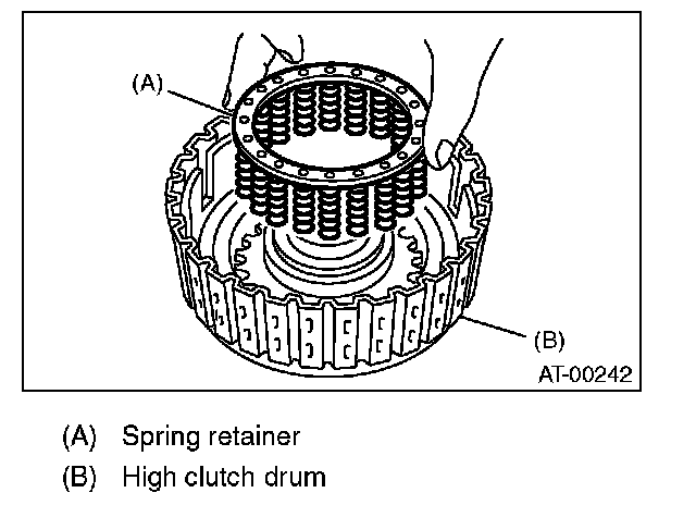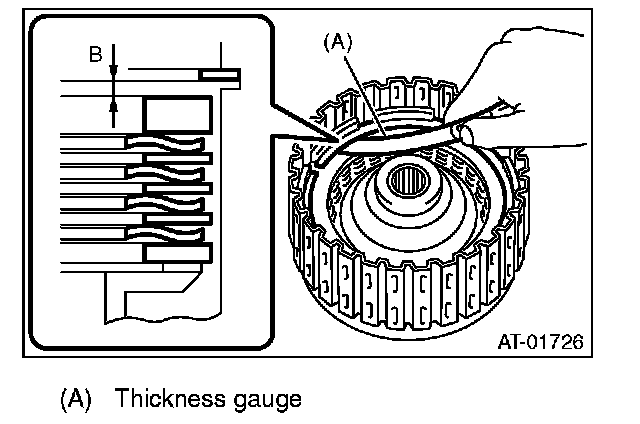 (1) Measure clearance "B" between the retaining plate and snap ring. (High clutch) At this time, do not press down the retaining plate.