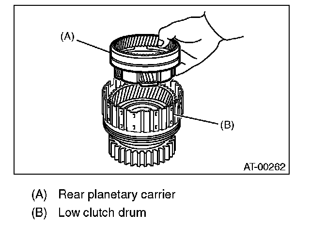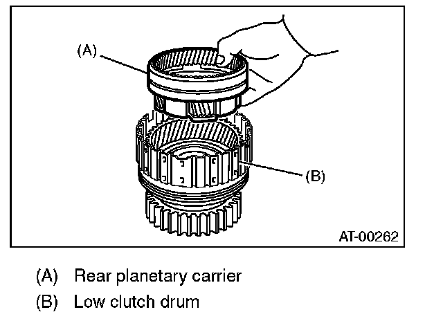13) Install the rear planetary carrier to the low clutch drum.