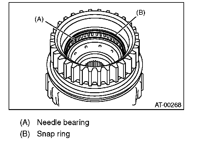 1) Install the needle bearing, and then secure with the snap ring.
