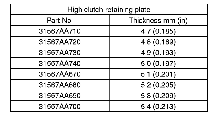 14) Selection of the reverse clutch retaining plate