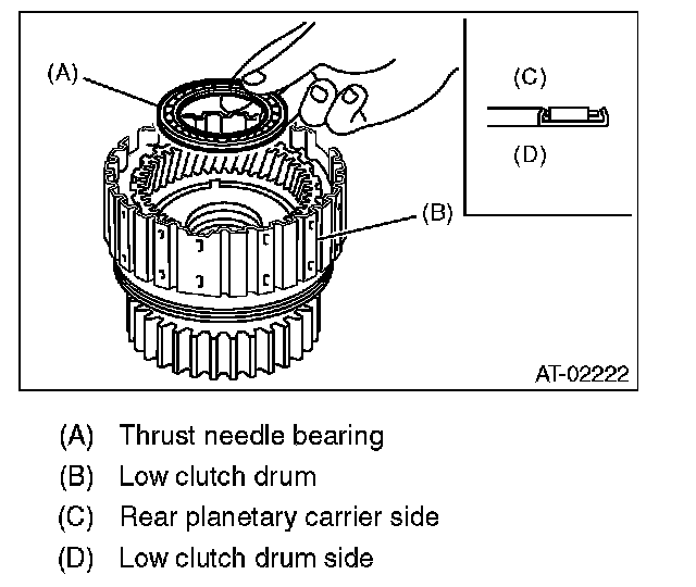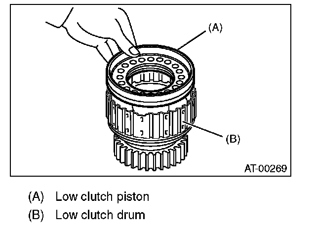 2) Install the low clutch piston to low clutch drum.