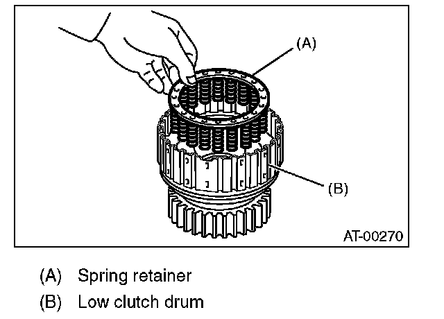 3) Install the spring retainer to low clutch piston.
