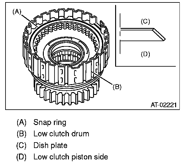 1) Remove the snap ring from low clutch drum.