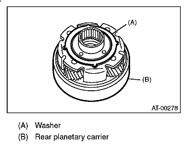 12) Install the washer by aligning the protrusion of the washer with the hole of the rear planetary carrier.