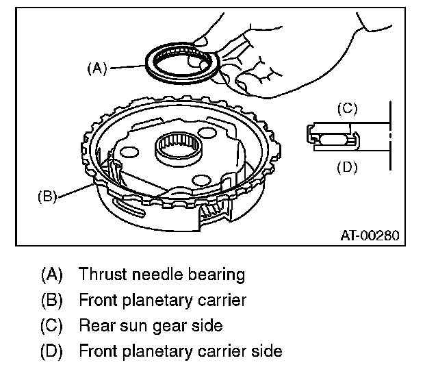 11) Install the thrust needle bearing in the correct direction.