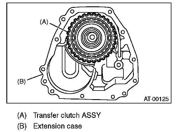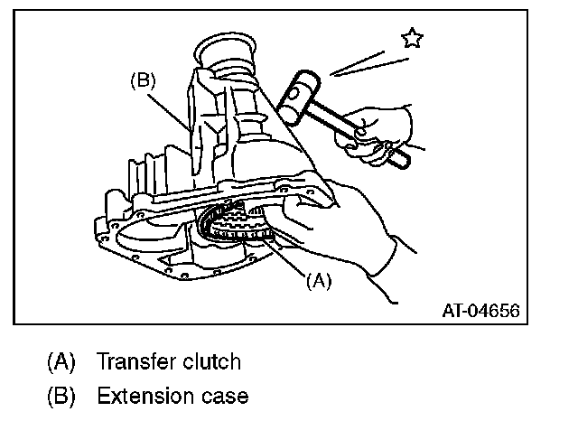 1) Hit the extension case lightly with a plastic hammer, and take out the transfer clutch.