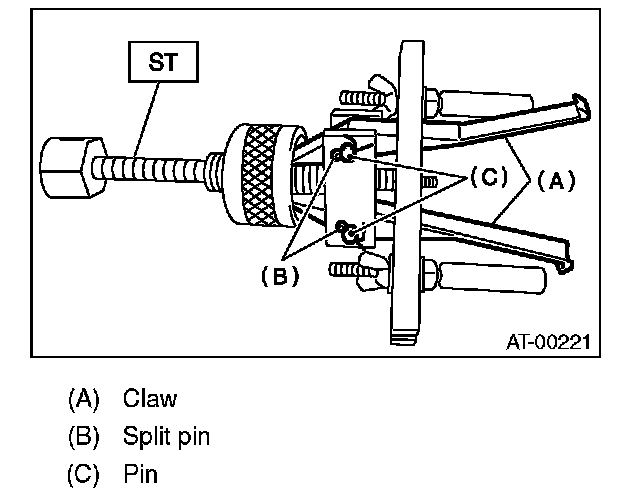(2) Attach two claws to the outer race, and set the ST to the differential side retainer.