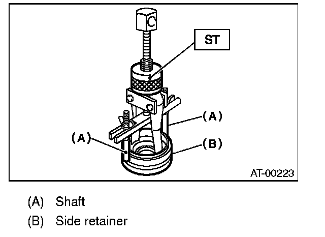 (4) Hold the shaft of ST to avoid detachment from the differential side retainer, and remove the bearing outer race.