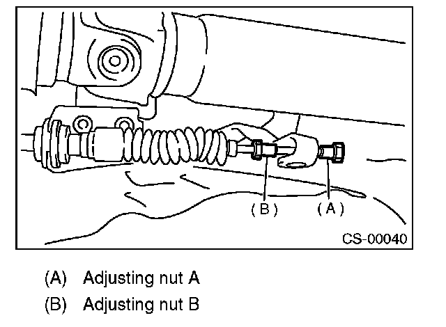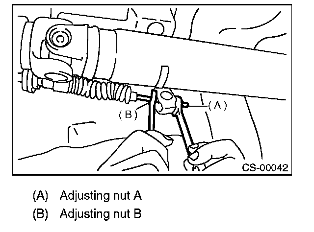 9) Set a spanner wrench to adjusting nut B so that it does not rotate, and then tighten the adjusting nut A.