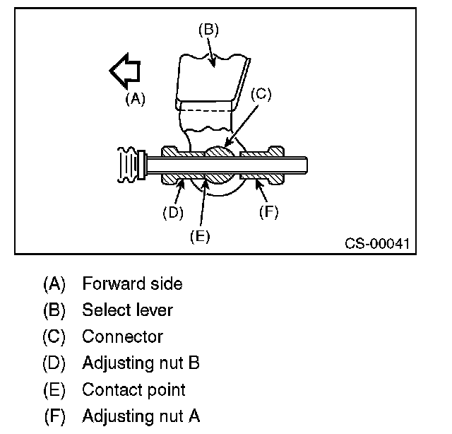 10) After the completion of adjustment, confirm that the select lever operates normally at all ranges.