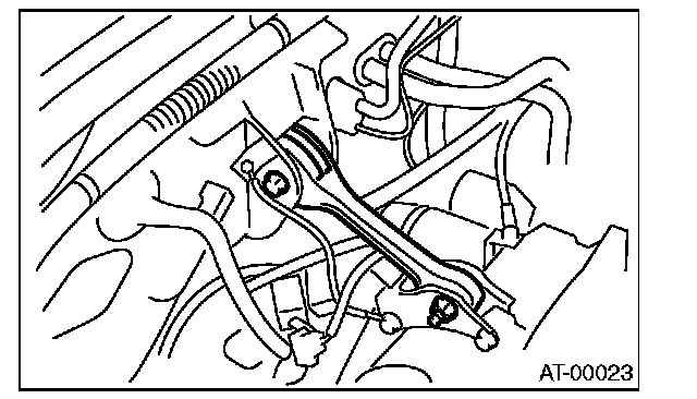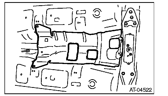 Make sure that the support plate of transmission jack does not touch the oil pan.
