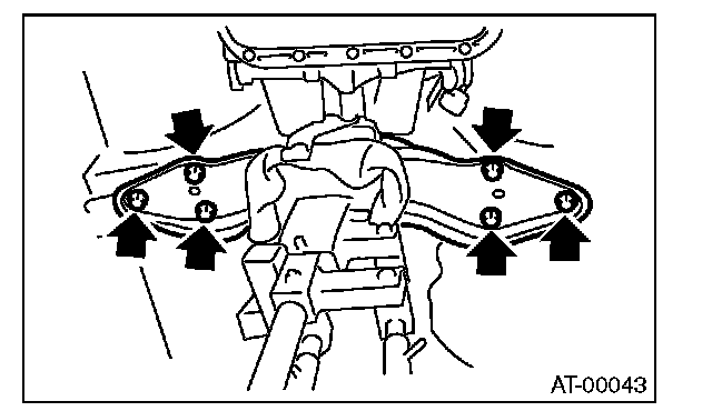 17) Remove the transmission rear crossmember bolt.