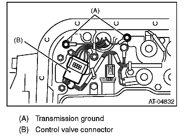 22) Disconnect the control valve connector and transmission ground terminal.
