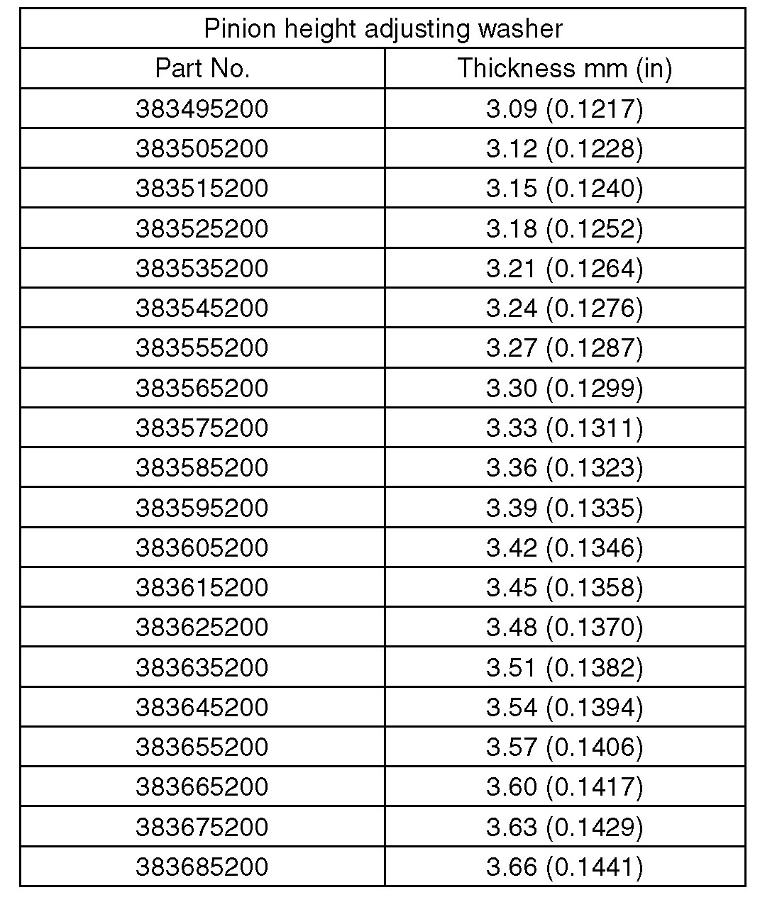 Adjust the drive pinion height with pinion height adjusting washer installed between the rear bearing cone and the back of pinion gear.