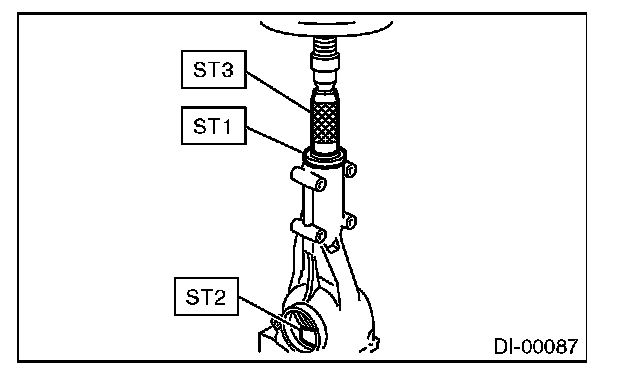 5) Press-fit the front bearing cone with ST1, ST2 and ST3.