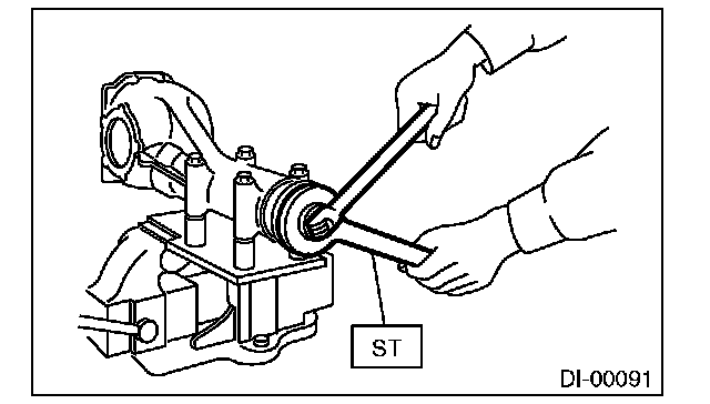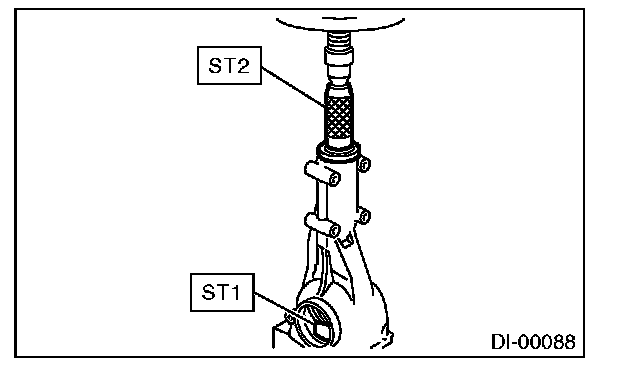 (2) Install the front bearing race to the differential carrier using ST1 and ST2.