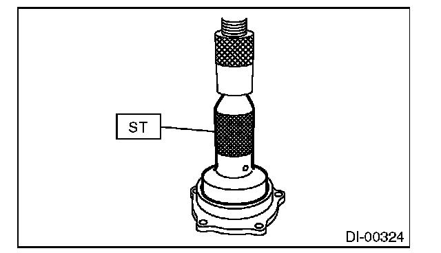 (3) Insert the ST1 (DUMMY SHAFT) into carrier with the pinion height adjusting washer and rear bearing cone fitted onto it.