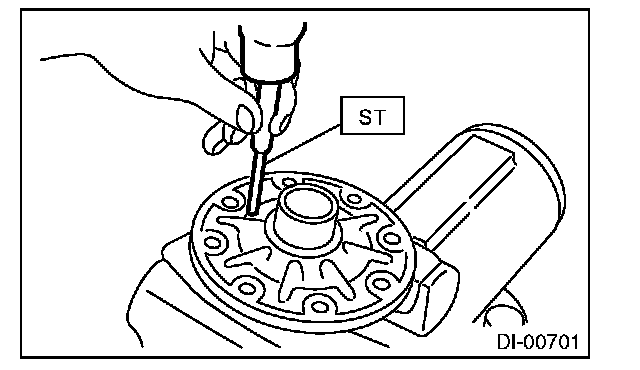 11) Remove the pinion shaft lock pin from driven gear side using ST.