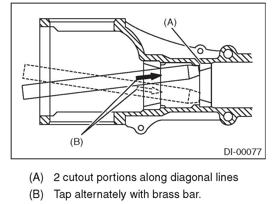 19) When replacing the bearings, use a brass bar to tap out the front bearing cup and rear bearing cup (in this order).