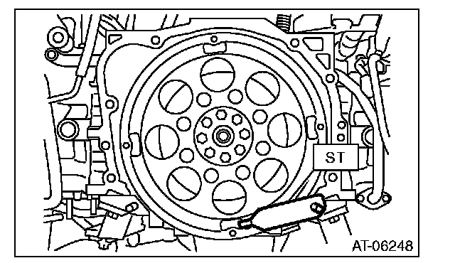 (3) While checking the tightening angle with the ST, further tighten the drive plate mounting bolts.