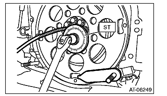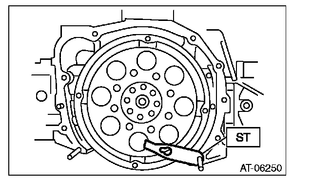 (2) While checking the tightening angle with the ST, further tighten the drive plate mounting bolts.