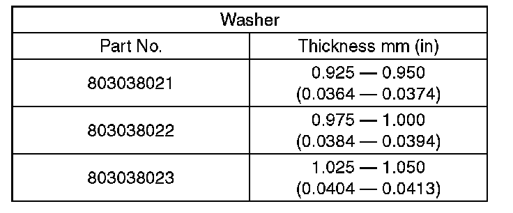 2) Select a suitable washer for the differential bevel gear from the table and install.