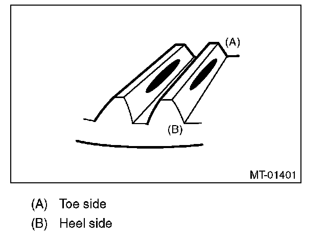 Check item: Tooth contact surface is slightly shifted toward the toe side under a no-load condition. (When driving, it moves towards the heel side.)