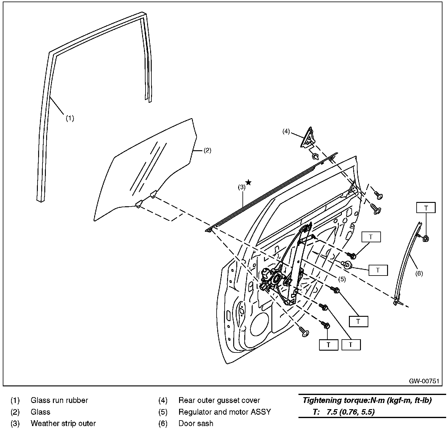 Refer to "COMPONENT" of "General Description". [Ref. to REAR DOOR GLASS, COMPONENT, General Description.]