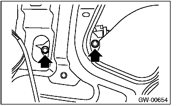 CAUTION: Without the carrier plate lowered to the bottom most position, do not lower the glass by itself to the lowest position within the door panel. Otherwise the glass may come off of the sash and become damaged.