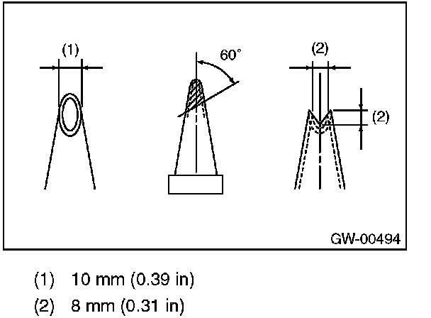 CAUTION: Apply protective tape, etc, and be careful that the inner and outer components of the vehicle are not damaged.